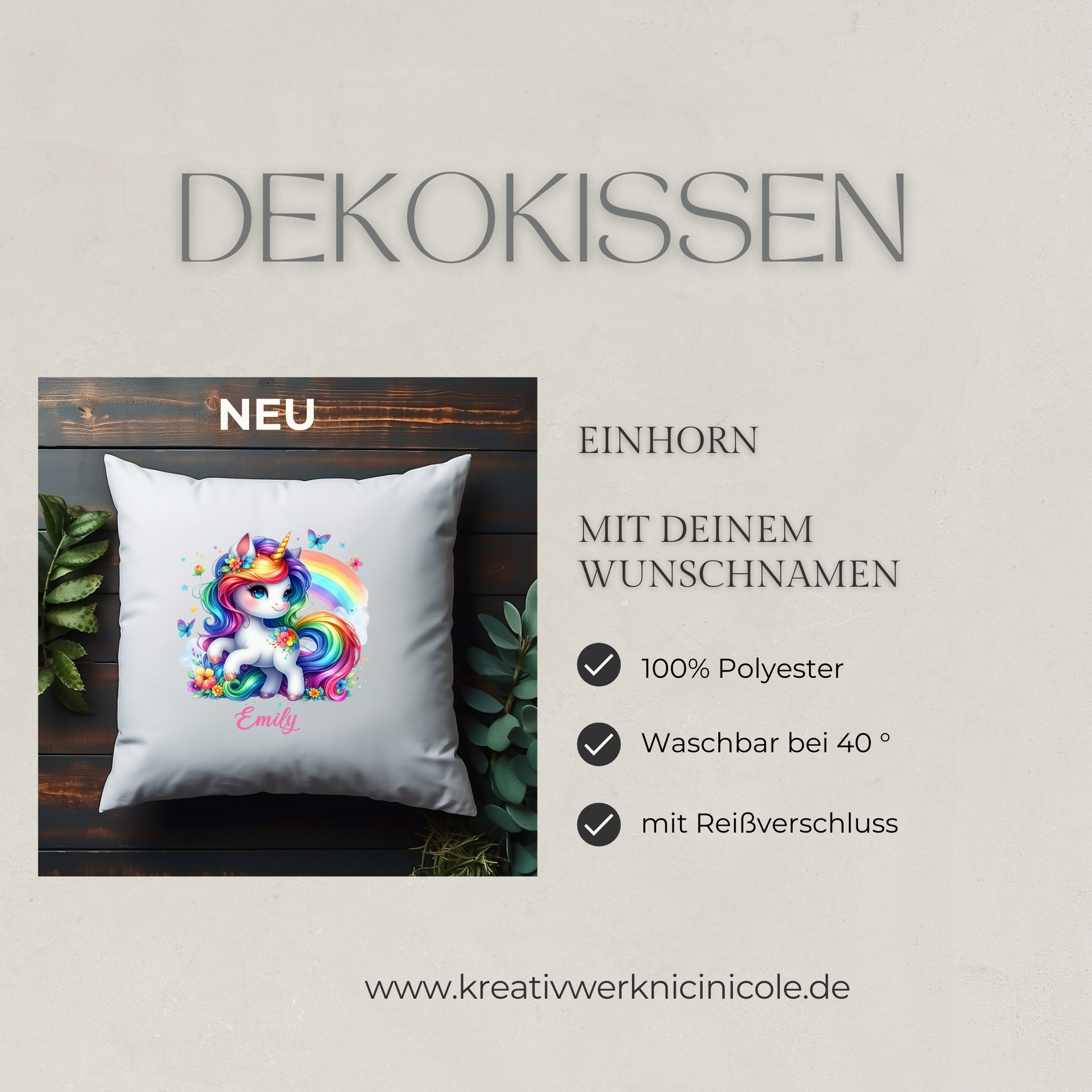 Deko-Kissenbezug personalisiert" Einhorn" mit deinem Wunschnamen